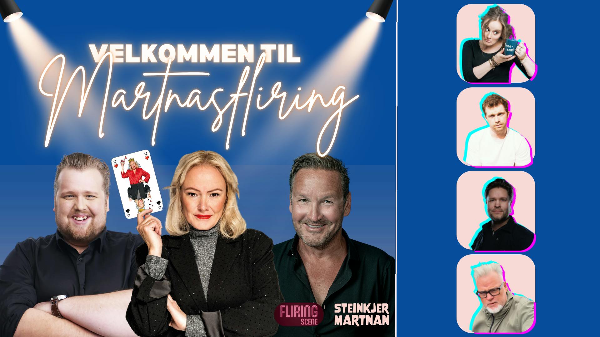 Gjør deg klar for en energisk og latterfylt kveld når Steinkjermartnan og Fliring Scene inviterer til Martnasfliring på torget! Under åpen himmel setter de opp et skikkelig standupshow, med noen av landets mest kjente komikere – krydret med lokale innslag du bare må få med deg. Før lattermusklene virkelig skal settes på prøve vil DJ Mavo sørge for magiske rytmer og herlig musikk.DJ Mavo vil også etter showet ta partyet til nye høyder. OBS! 18-års aldersgrense.